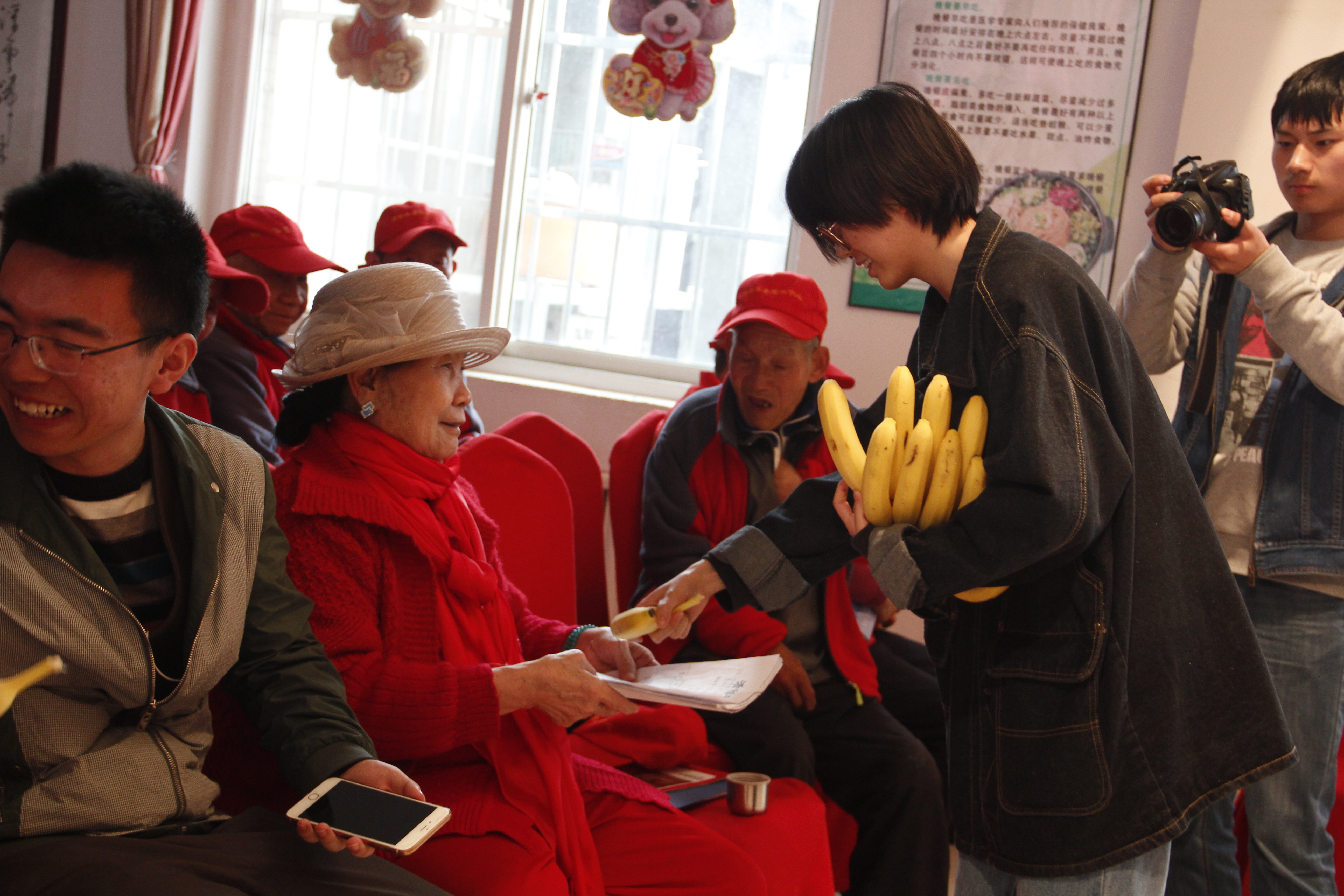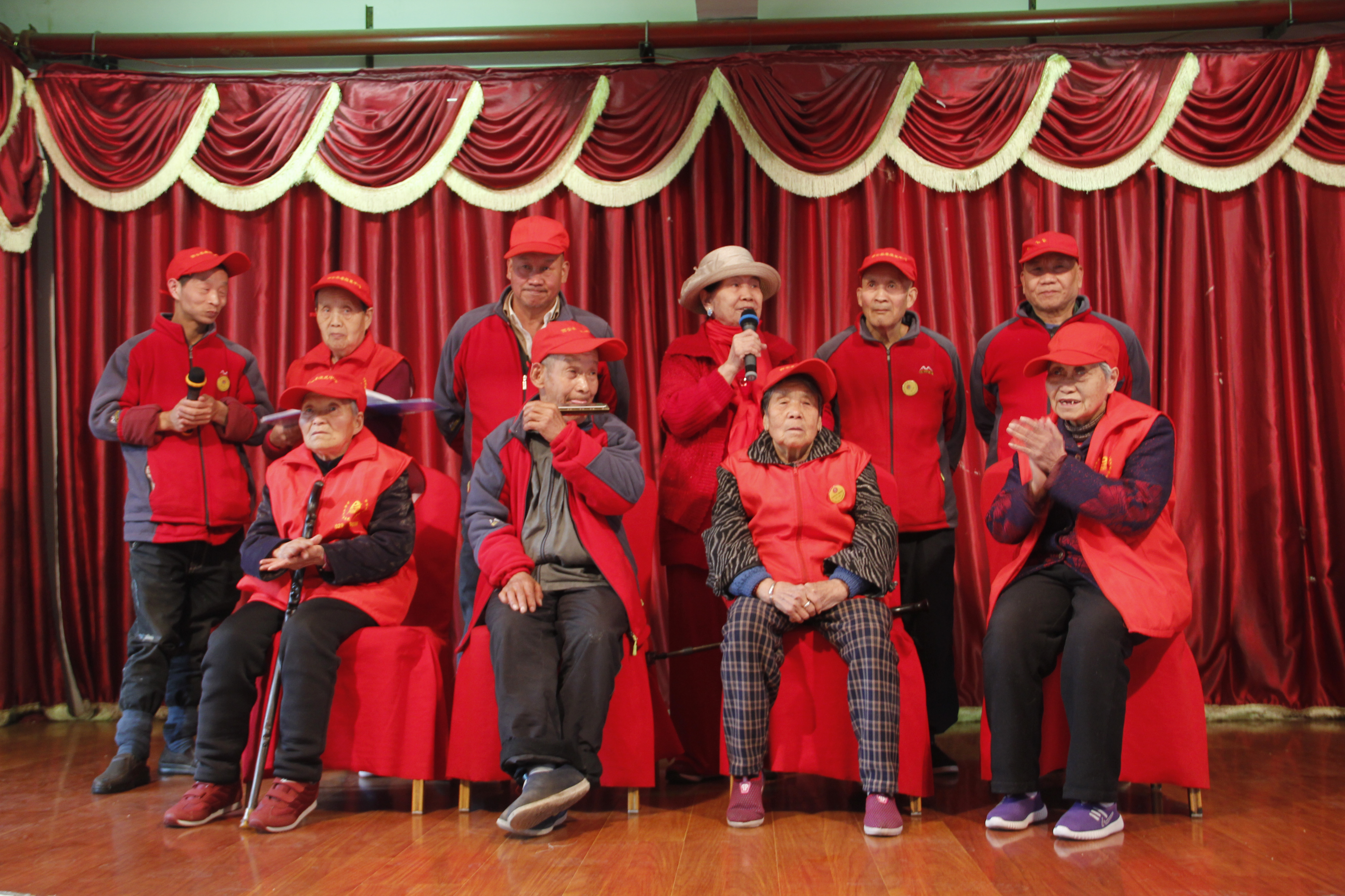 到达中心敬老院,等待老人们陆续就坐后,我们开始为老人表演精心准备的节目。