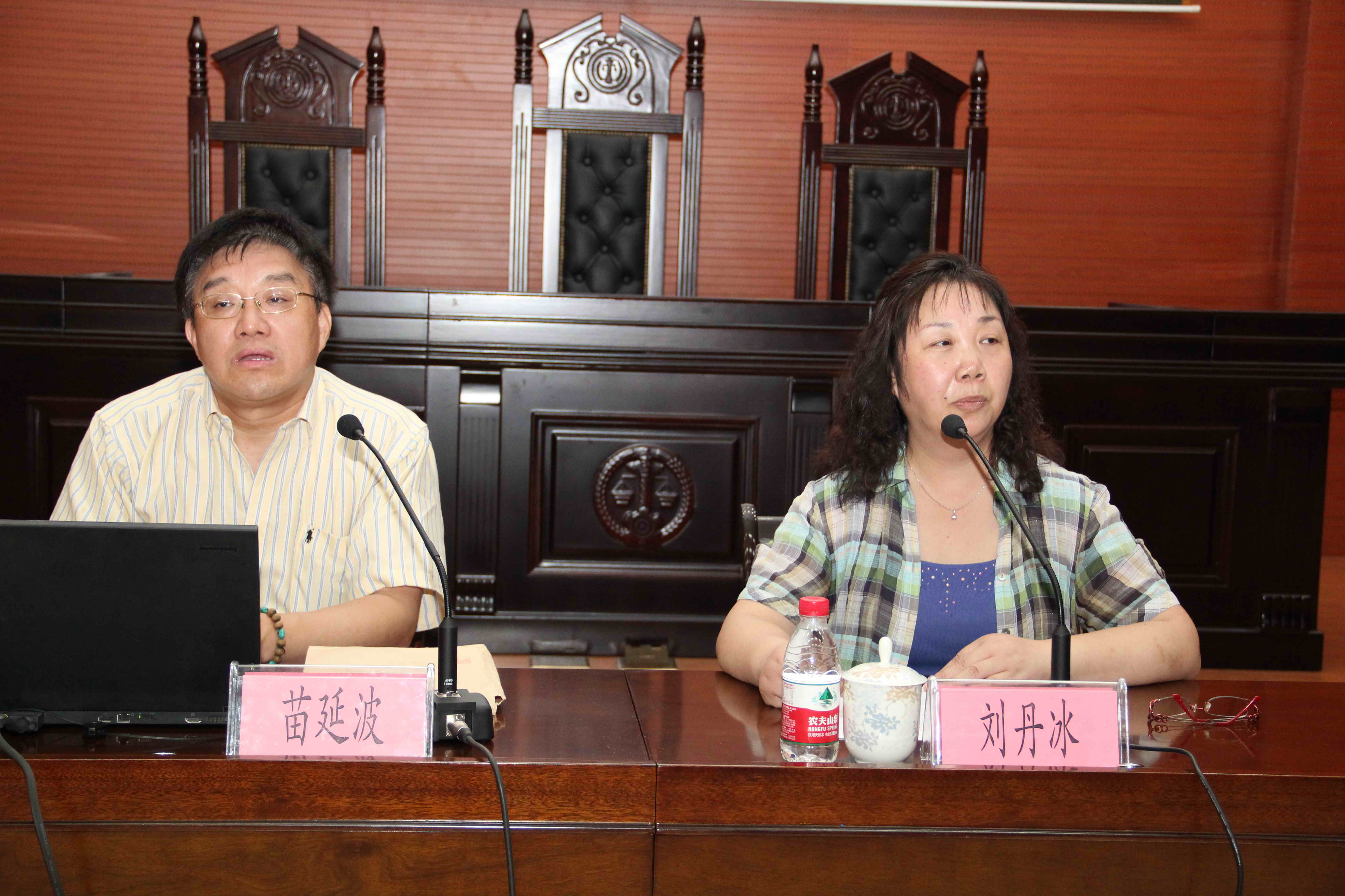 2012618下午3点,我校110周年校庆系列讲座暨法学前沿论坛第十六讲在模拟法庭隆重举行。我院院长刘丹冰教授主持此次论坛,《法学杂志》副主编苗延波教授应邀为我院师生作了题为“中国传统文化与中国当代法律文化之构建”的讲座。