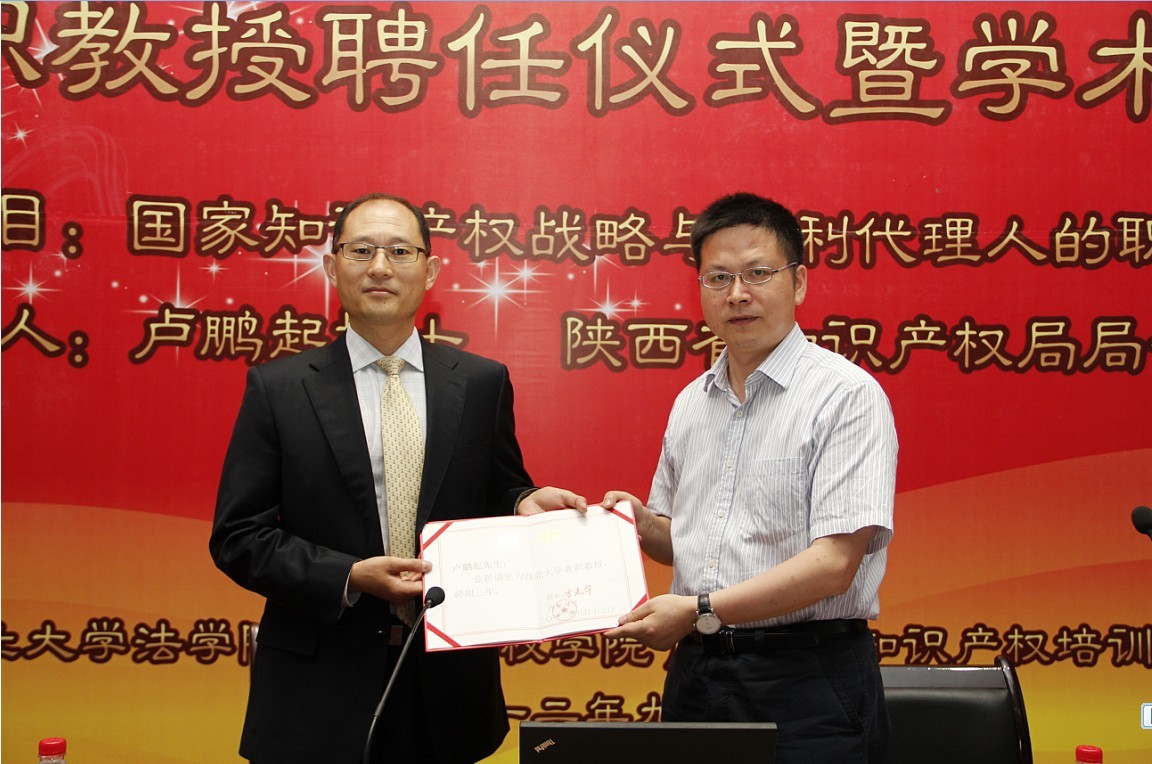 陕西省知识产权局局长卢鹏起兼职教授聘任仪式暨学术讲座在我校举行