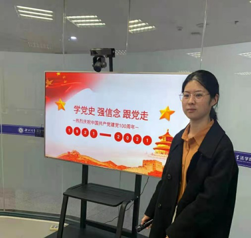 2021年3月9日,第四场团组织生活会召开,由德法兼修研习社石珂珂作为领学人进行汇报讲解。20级学硕团员青年经过学习探讨,领悟了党史学习的重要性,通过回顾党的发展历史和重大事件,深度理解了党的重要会议和思想创新,并坚定不移的宣誓承载着党的使命向未来展望。