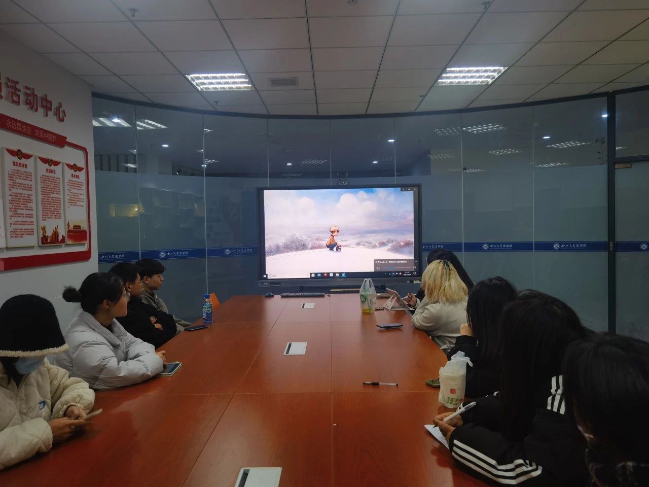 心协负责人刘晨茜组织各心理委员观看心理影片《男孩、鼹鼠、狐狸和马》。影片结束后,培训参与成员根据影片内容,自由发表关于“学会接纳自我”的观点,增强了对“接纳自我”的认识。