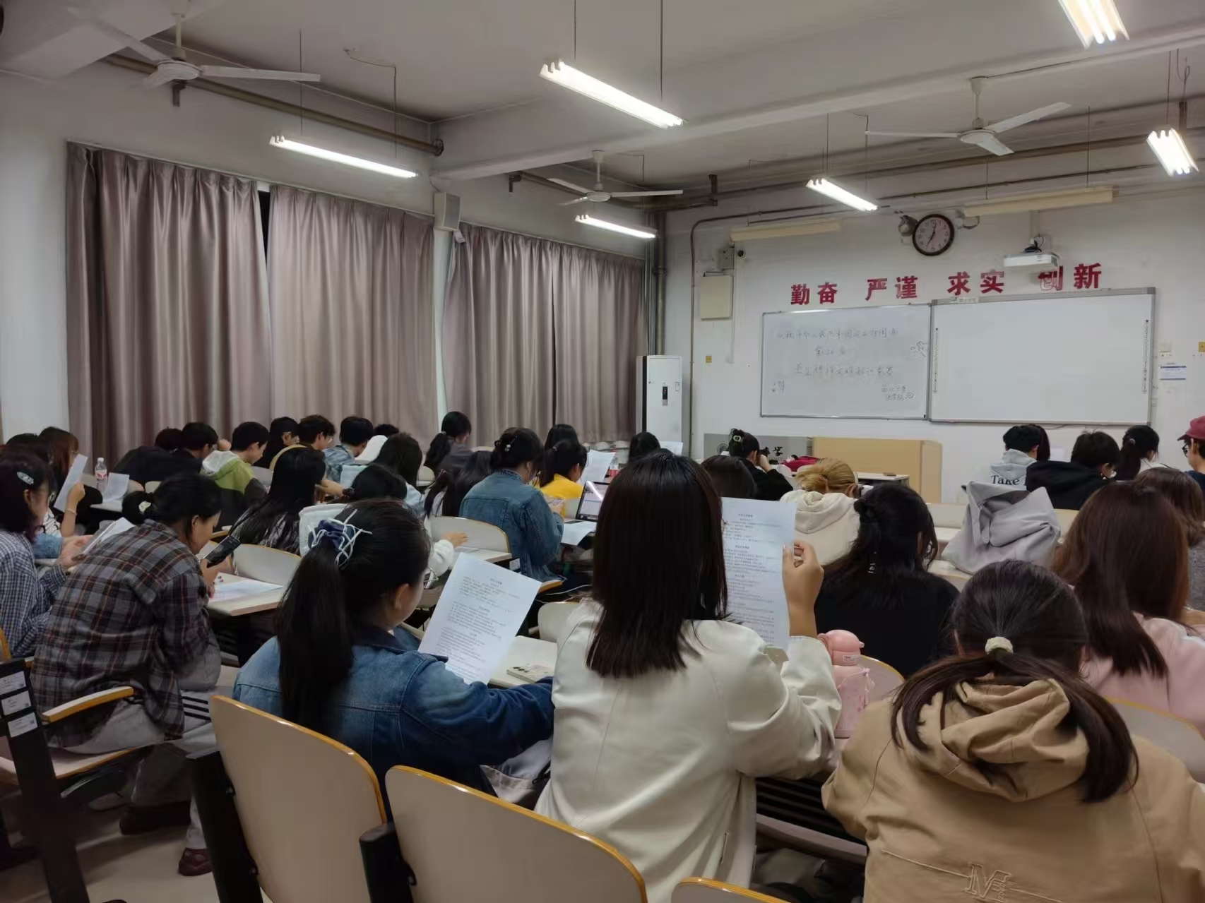 初赛以学生线下速记党史、校训,由负责人提问相关内容的方式展开。同学们拿起笔,庄重地写下自己的名字,然而字易书写,言不尽却是这份深入贯彻党的二十大和二十届三中全会思想、积极投身社会主义建设的信念与承诺。